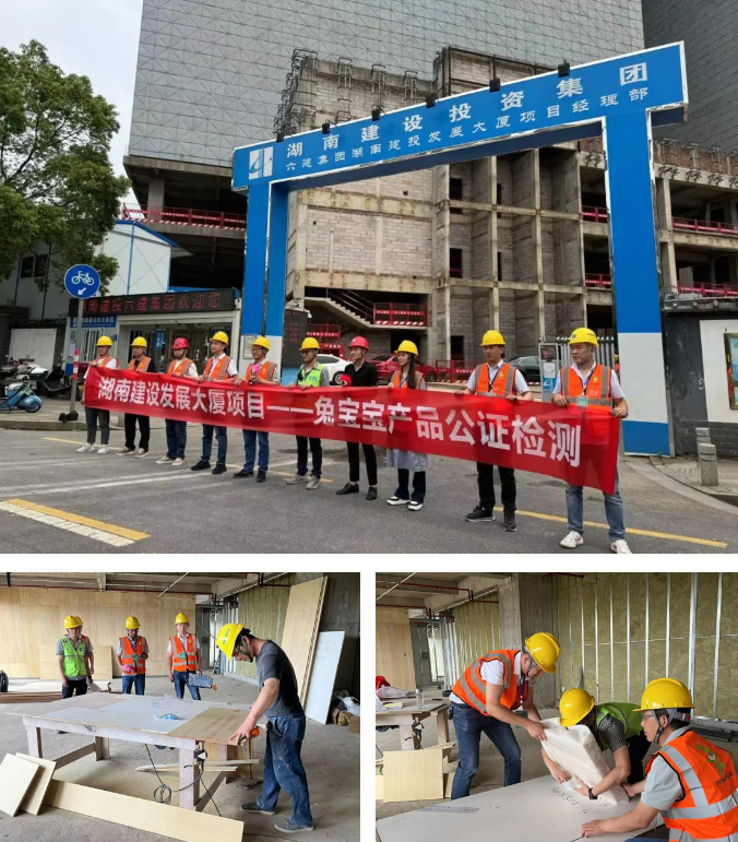2024年,兔寶寶重磅開啟了以“安全有我,人人有責(zé)”為主題的“拜托了 ‘防火墻’”公檢活動。5月8日,兔寶寶公檢隊(duì)伍來到了湖南長沙的湖南建設(shè)發(fā)展大廈,在長沙消防安全部門、湖南建投六建三分公司、湖南建工裝飾、華測檢測認(rèn)證機(jī)構(gòu)等相關(guān)機(jī)構(gòu)和專家的共同見證下,以公開透明的方式對工地現(xiàn)場的兔寶寶難燃膠合板進(jìn)行現(xiàn)場抽樣、簽字、封樣等,然后將封樣的產(chǎn)品送檢至國家檢測機(jī)構(gòu),針對兔寶寶難燃膠合板的燃燒性能和環(huán)保性能進(jìn)行檢測。