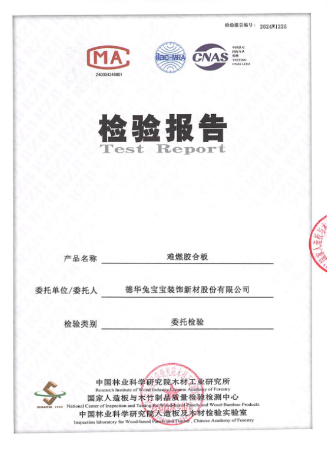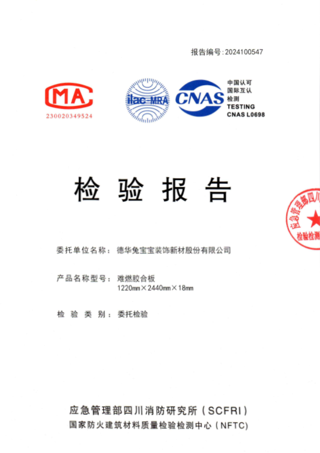近日,兔寶寶收到了來自國家檢測機(jī)構(gòu)的特殊“成績單”,其難燃膠合板在燃燒性能和環(huán)保性能兩個關(guān)鍵科目上均取得了滿分合格的優(yōu)異成績。