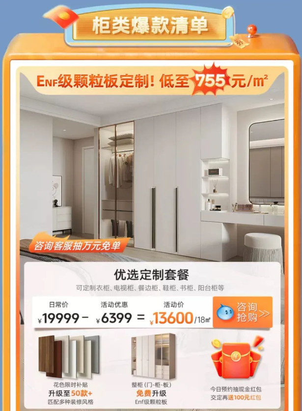 兔寶寶積極響國家政策,真正讓利消費者,補貼加碼,與國家補貼形成政企雙補貼的合力之勢,讓消費者享受到真正的家裝煥新福利!借此之際,推出系列全屋定制套餐,讓大家省心又省錢,包括優(yōu)選定制套餐、空間任選套餐、整家定制套餐等,除此之外,還有超多款式的地板、木門,等你來挑選。勁爆福利價,讓你意想不到的驚喜,錯過就要等一年,要煥新家,就趁現(xiàn)在!不止這些,補貼層層加碼,兔寶寶雙十一品質(zhì)鉅惠煥新節(jié),活動期間除爆款外,還有超多福利,讓你買得爽,省得更爽!