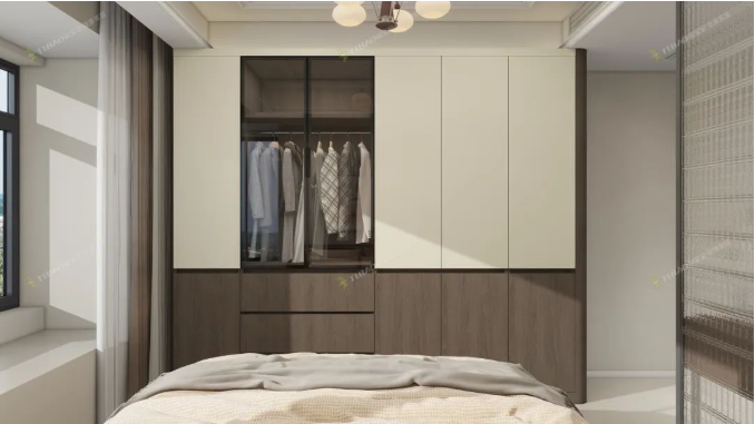 利用書桌、衣柜、床打造“實(shí)用黃金三角”,節(jié)約空間、集中收納、動線合理、實(shí)用高效,不僅可以滿足工作的需求,也能當(dāng)做臥室使用,功能性更強(qiáng)。