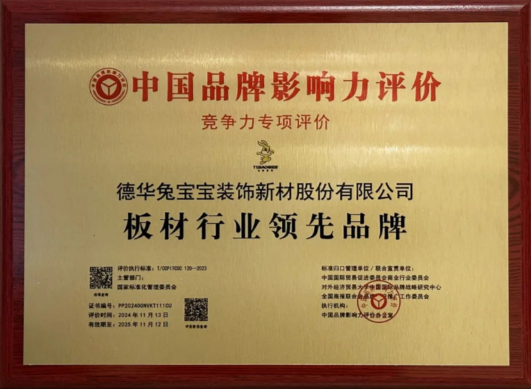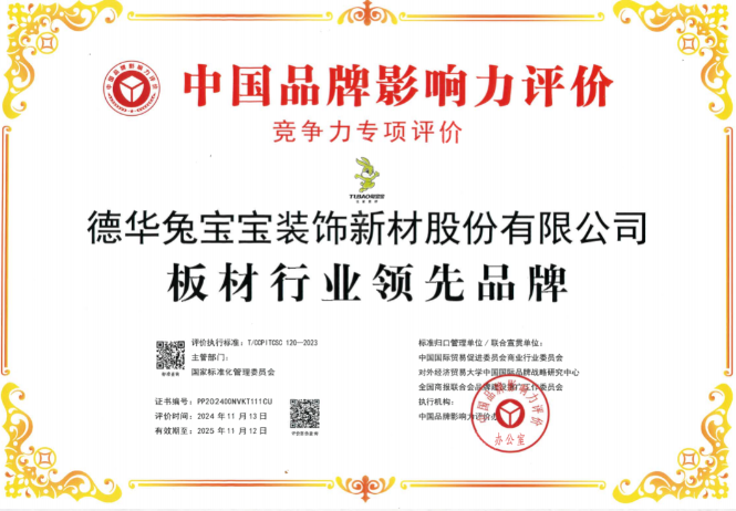 品牌影響力是企業(yè)開拓市場(chǎng)、占領(lǐng)市場(chǎng)的重要因素。近日,在備受矚目的中國(guó)品牌影響力評(píng)價(jià)活動(dòng)中,兔寶寶憑借卓越的產(chǎn)品品質(zhì)、貼心的服務(wù)以及廣泛的市場(chǎng)認(rèn)可度,榮膺“板材行業(yè)領(lǐng)先品牌”獎(jiǎng)項(xiàng)!
