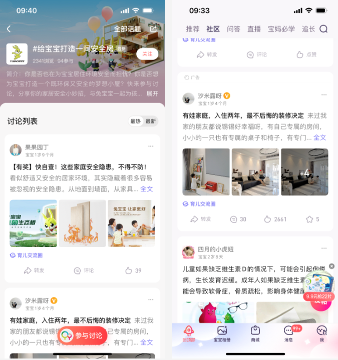 我們還在寶寶樹APP上發(fā)起了#給寶寶打造一間安全房#的話題。家長(zhǎng)們可以在這個(gè)平臺(tái)上曬出你家的溫馨角落,并分享寶寶“安全房”的打造心得,無論是關(guān)于家具擺放、電源插座安全,還是窗戶防護(hù)、地面防滑等方面的建議,我們都熱切歡迎您的參與,更有機(jī)會(huì)贏取專屬驚喜好禮(床品4件套或京東卡)!我們希望通過這次活動(dòng),讓更多的家長(zhǎng)意識(shí)到居家安全的重要性,并學(xué)會(huì)如何為孩子打造一個(gè)更加安全、舒適的成長(zhǎng)環(huán)境。同時(shí),我們也希望通過這次活動(dòng),讓家長(zhǎng)們能夠互相學(xué)習(xí)、交流經(jīng)驗(yàn),共同為孩子們的成長(zhǎng)助力。讓我們攜手共建“安全房”,為孩子的未來添磚加瓦!
