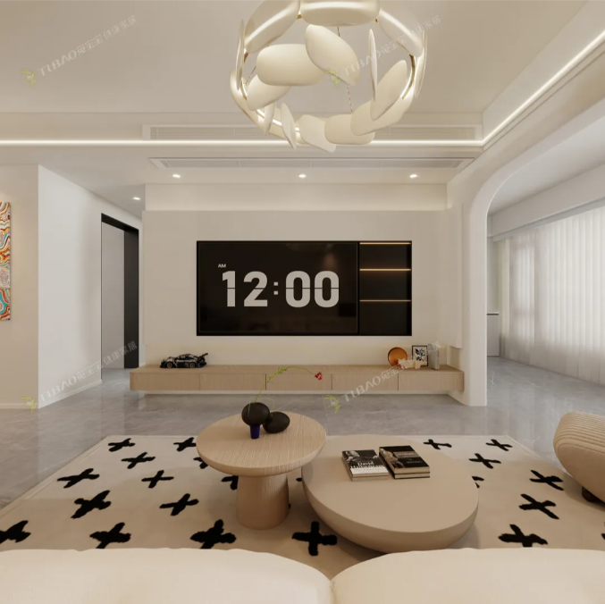 懸浮電視墻下的儲物柜暗藏收納智慧