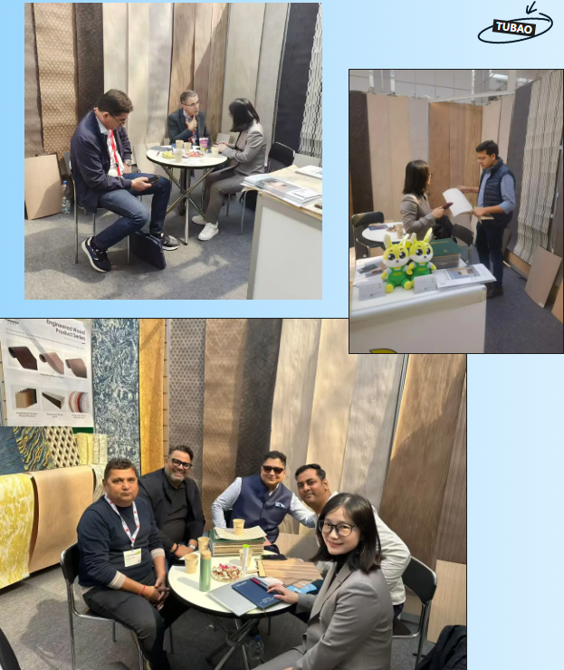 同時(shí),兔寶寶憑借卓越的產(chǎn)品品質(zhì)和專業(yè)的服務(wù),吸引了眾多國際客戶的關(guān)注。來自不同國家和地區(qū)的客戶紛紛駐足展位,詳細(xì)了解產(chǎn)品信息,并對科技木的性能、設(shè)計(jì)和環(huán)保理念給予高度評價(jià)。通過深入的溝通與交流,兔寶寶與多個(gè)地區(qū)的客戶達(dá)成合作意向,進(jìn)一步拓展了其國際市場版圖。