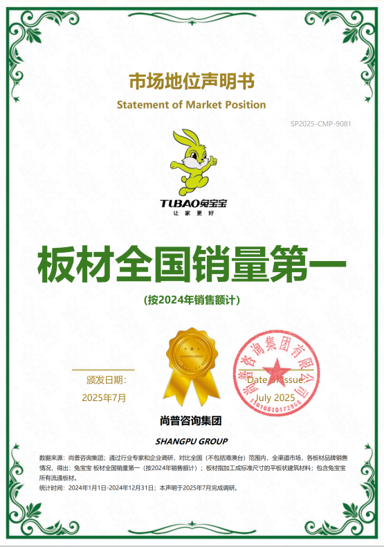 30多年匠心沉淀鑄就國民品牌,高于國標(biāo)的企業(yè)標(biāo)準(zhǔn),F(xiàn)SC、EPA、中國環(huán)境標(biāo)志產(chǎn)品等多項(xiàng)權(quán)威認(rèn)證,是兔寶寶銷量冠軍的根基。世博會(huì)、G20峰會(huì)、青島上合峰會(huì)、聯(lián)合國世界地理信息大會(huì)、北京大興機(jī)場、杭州亞運(yùn)會(huì)等國家工程項(xiàng)目的選擇印證兔寶寶產(chǎn)品品質(zhì)高度;全國6000+門店網(wǎng)絡(luò)、深度覆蓋縣鎮(zhèn)的渠道體系構(gòu)建銷量基石;與家具廠、裝企的深度合作更形成強(qiáng)勁增長極。當(dāng)兔寶寶板材成為裝修首選,這份“全民選擇”的信任,正是對“銷量第一”最有力的見證。