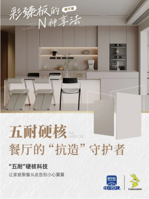 同時(shí),大宅的使用場(chǎng)景復(fù)雜且頻繁,公共區(qū)域的日?;顒?dòng)、私密空間的長(zhǎng)期使用,都對(duì)材料的耐用性提出嚴(yán)苛要求。彩臻板創(chuàng)新研發(fā)的“五耐”硬核科技(耐污染、耐黃變、耐高溫、耐刮擦、耐腐蝕),恰好應(yīng)對(duì)了這些挑戰(zhàn)。