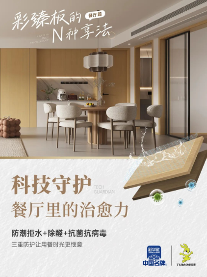 彩臻板的自然紋理與溫潤(rùn)觸感,為空間注入了呼吸感,消解了大宅因大可能產(chǎn)生的疏離感。而研發(fā)的除醛、抗菌抗病毒、防潮拒水等實(shí)用功能,更將健康與便利融入生活細(xì)節(jié)。這些功能讓設(shè)計(jì)師無(wú)需在美觀與實(shí)用間妥協(xié),讓大宅的每一處都貼合生活的真實(shí)需求,最終實(shí)現(xiàn)“有格調(diào)更有溫度”的居住體驗(yàn)。