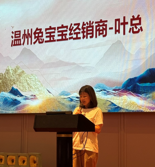 最后,溫州經(jīng)銷商葉建春葉總上臺(tái)致辭。她深入分析了溫州家居市場的發(fā)展?jié)摿?,指出隨著消費(fèi)升級(jí)和健康意識(shí)的提升,環(huán)保家居產(chǎn)品將迎來廣闊的發(fā)展空間。兔寶寶新推出的產(chǎn)品非常符合消費(fèi)者對(duì)高品質(zhì)家居的需求。相信通過大家的共同努力,一定能夠在溫州市場開創(chuàng)出一片新天地,為當(dāng)?shù)叵M(fèi)者帶來更多優(yōu)質(zhì)的產(chǎn)品和服務(wù)。