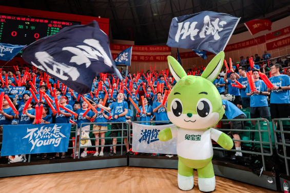 在這場精彩紛呈的體育盛宴中,一道亮眼的風(fēng)景線格外引人注目。為全力支持湖州隊(duì)勇創(chuàng)佳績,兔寶寶應(yīng)援團(tuán)隊(duì)身著統(tǒng)一的文化衫,手持定制助威道具,以整齊劃一的動(dòng)作和富有節(jié)奏的口號(hào),為賽場注入澎湃動(dòng)力。在比賽的關(guān)鍵時(shí)刻,應(yīng)援團(tuán)隊(duì)嘹亮口號(hào)響徹全場,將現(xiàn)場氣氛推向高潮,展現(xiàn)兔寶寶對本土體育事業(yè)的堅(jiān)定支持??蓯鄣耐脤殞欼P玩偶更是成為現(xiàn)場的小明星,不少觀眾爭相合影,成功打造了熱烈而有序的主場氛圍,讓每一位觀眾都能深度參與其中,切身感受體育競技的魅力。