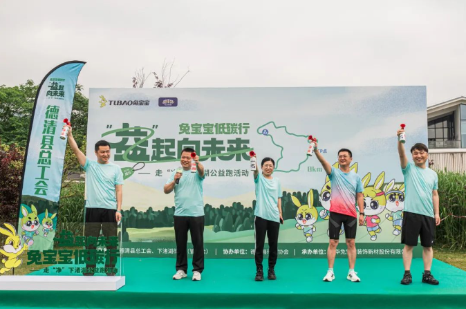 本次公益跑活動,所有的參賽選手都參與到了兔寶寶“捐步造林”項目中,每位參賽者根據(jù)完賽時的微信步數(shù),可兌換為相應數(shù)量的公益苗(每10000步可兌換為1棵公益苗),為環(huán)保助力。根據(jù)賽事統(tǒng)計,共兌換了156棵公益苗。在兔寶寶“捐步造林”項目捐贈儀式上,德華兔寶寶裝飾新材股份有限公司副總經(jīng)理徐偉達為8支隊伍頒發(fā)了捐贈牌,后續(xù)將由兔寶寶統(tǒng)一捐贈給下渚湖國家濕地公園進行公益造林,用于保護下渚湖濕地的生態(tài)環(huán)境,共同打造綠水青山的美好家園。