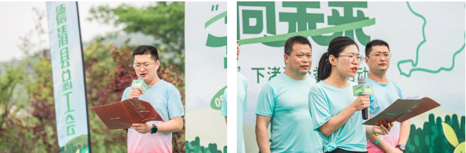 在開幕式上,下渚湖街道黨工委書記、管委會主任嵇會斌與德清縣總工會黨組書記、常務副主席郭寧寧作為主辦方代表上臺致辭,向來自各地的參賽者表示了熱烈的歡迎,并感謝各位參賽者和嘉賓能夠積極參與到環(huán)保與公益事業(yè)中,一起為公益奔跑,為環(huán)保助力!