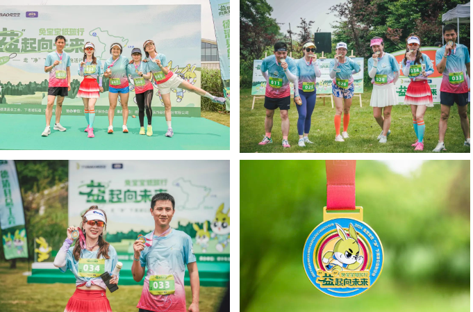 在終點處,兔寶寶設置了環(huán)保知識趣味問答區(qū),參賽隊員到達終點后,可參與趣味問答,答對即可獲得兔寶寶IP系列小禮品一個,并領取本次公益跑賽事的完賽牌作為紀念。