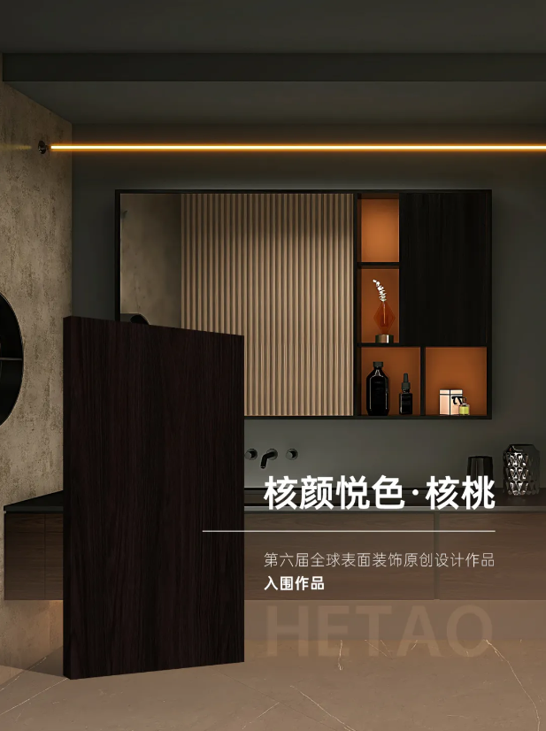 核顏悅色·核桃以凸顯材質(zhì)核心優(yōu)勢為設(shè)計核心,精準捕捉核桃木油潤通透的質(zhì)感與厚重沉穩(wěn)的格調(diào),最大化呈現(xiàn)原生材質(zhì)的溫潤特質(zhì)。同時深度挖掘全山紋紋理的色彩層次感與浮雕立體感,借助同步鋼板工藝的賦能,讓紋理的美學效果得以具象化展現(xiàn)。