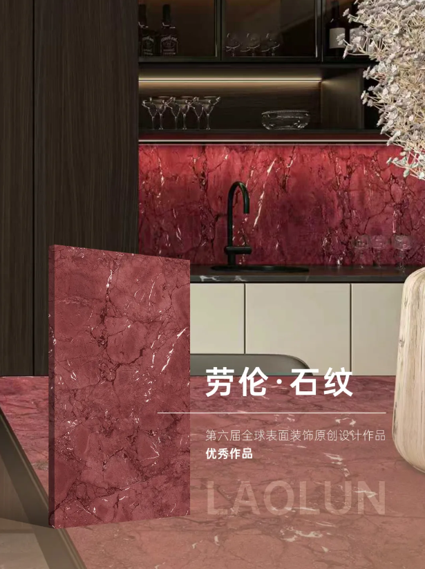 勞倫·石紋設(shè)計靈感源自億萬年地質(zhì)形成的大理石,并將璀璨星河般的宏大意境完美融入底色。其花紋的獨特優(yōu)勢,正是斬獲“優(yōu)秀作品”榮譽的核心所在。畫面中,天然石材的肌理與人工藝術(shù)的巧思激烈碰撞,形成了蜿蜒交錯、氣勢磅礴的流動脈絡(luò)。這不僅是自然的隨機筆觸,更是經(jīng)過精密提煉的美學秩序。每一道紋路都如宇宙星云般神秘深邃,在深邃的底色上延展、流動,創(chuàng)造出無限延伸的視覺張力。細觀之下,色澤與紋理的過渡細膩而富有層次,既有潑墨山水的寫意磅礴,又不失顯微鏡下晶體生長的精密質(zhì)感。這種源于自然卻高于自然的表現(xiàn)力,使得“勞倫·石紋”超越了單純的材質(zhì)模仿,成為兼具自然造化之奇與人文設(shè)計之美的藝術(shù)杰作,其獨一無二的視覺魅力與藝術(shù)價值,榮膺殊榮,當之無愧。