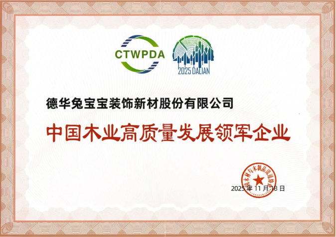 資訊中心 榮耀加冕!兔寶寶榮膺“中國木業(yè)高質(zhì)量發(fā)展領(lǐng)軍企業(yè)”,實力引領(lǐng)行業(yè)未來