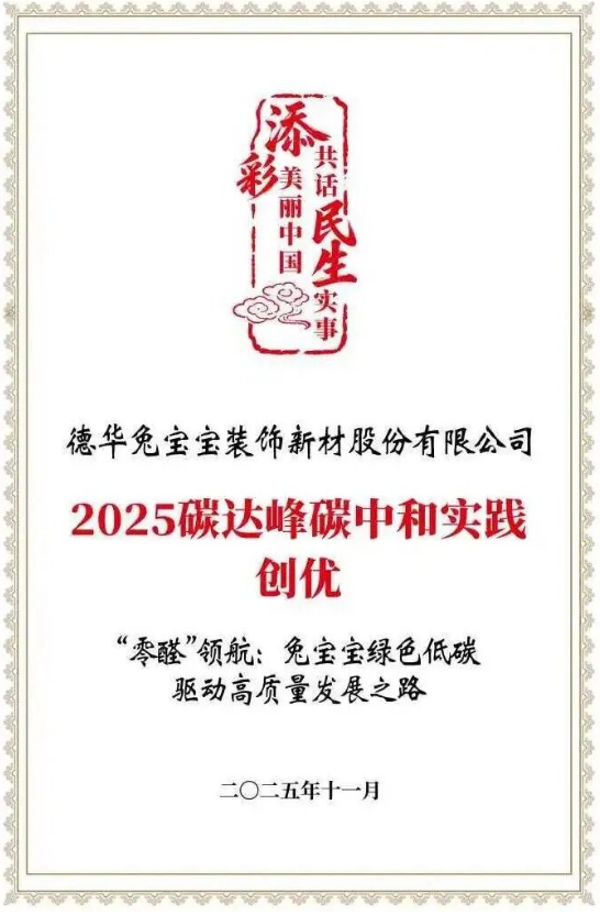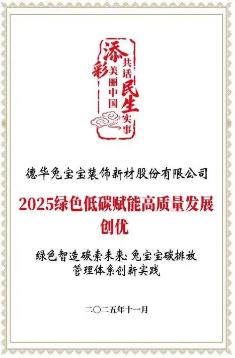 “2025 綠色低碳賦能高質(zhì)量發(fā)展創(chuàng)優(yōu)”獎(jiǎng)項(xiàng),是對(duì)兔寶寶深耕環(huán)保板材領(lǐng)域、持續(xù)引領(lǐng)健康標(biāo)準(zhǔn)的高度認(rèn)可。作為裝飾材料行業(yè)的標(biāo)桿企業(yè),兔寶寶始終將 “綠色、健康、環(huán)保” 為產(chǎn)品理念,用三十余年技術(shù)迭代完成了從“達(dá)標(biāo)”到“定義標(biāo)準(zhǔn)”的轉(zhuǎn)變。