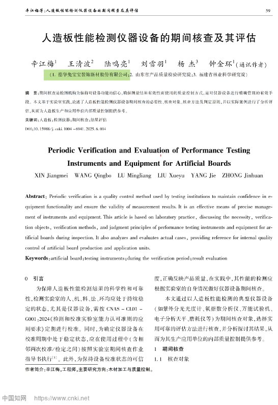 《人造板性能檢測(cè)儀器設(shè)備的期間核查及其評(píng)估》(發(fā)表于《計(jì)量與測(cè)試技術(shù)》2025年 第6期)▼▼▼