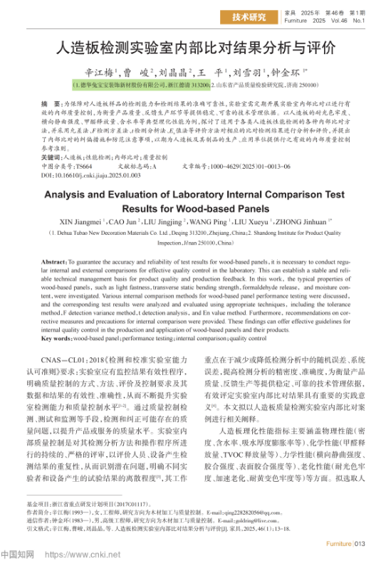 《人造板檢測(cè)實(shí)驗(yàn)室內(nèi)部比對(duì)結(jié)果分析與評(píng)價(jià)》(發(fā)表于《家具》2025 第1期)▼▼▼
