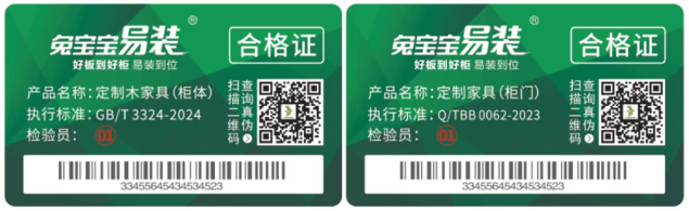 兔寶寶易裝定制的每組柜門及柜體都貼有一張產品合格證,這是品牌身份的直觀體現(xiàn)。消費者只需通過掃描商標二維碼,可在“產品防偽查詢”專區(qū)一鍵查詢產品真?zhèn)巍?/p>