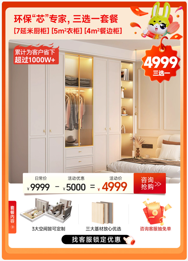 領(lǐng)10000元裝修心愿基金,為您的煥新計劃注入第一筆“啟動金”。無論是全屋定制,還是局部改造,兔寶寶都能輕松助你打造夢想家!