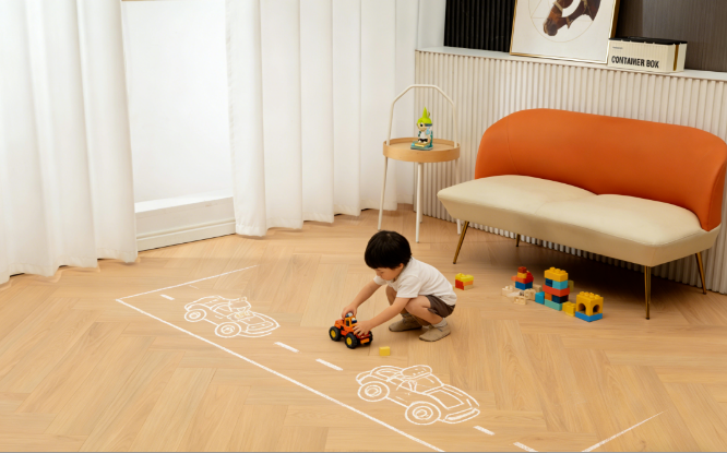 面對孩子的肆意撒歡,兔寶寶風(fēng)行系列地板自帶硬核守護力。超耐磨、超耐刮的特性,輕松抵御玩具磕碰、腳步摩擦。腳下這片堅實的空間,足夠承載孩子整個童年的自由與歡喜,也讓媽媽徹底卸下后顧之憂,安心享受片刻的松弛。