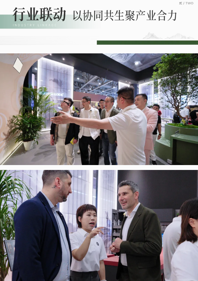 吉時(shí)啟幕,萬(wàn)眾矚目。廣東省定制家居協(xié)會(huì)、廣東衣柜行業(yè)協(xié)會(huì)秘書(shū)長(zhǎng)、博駿傳媒創(chuàng)始人曾勇,德華兔寶寶副總經(jīng)理、飾材銷售公司總經(jīng)理趙建鋒,總經(jīng)理助理、供應(yīng)鏈管理公司總經(jīng)理陸鳴亮,飾材銷售公司副總經(jīng)理陳海明,廣州有度設(shè)計(jì)創(chuàng)始人、設(shè)計(jì)總監(jiān)劉智銘,Elletipi-Boss Mr. Lorenzo,BandiniOMGE - Sales Manager Ms. Laura Pozzi,INOXA-Export Manager Mr. Giovanni Vianelli,卡洛林·軟木公司主理人陸澤友,卡洛林·軟木公司中國(guó)市場(chǎng)渠道發(fā)展負(fù)責(zé)人劉乃國(guó),新品制造局創(chuàng)始人張巍,以及福建大漆非遺傳承人沈錦麗、巫溪嫁花非遺傳承人唐麗娟等嘉賓共同登臺(tái)剪彩,在行業(yè)同仁與媒體摯友的共同見(jiàn)證下,正式拉開(kāi)本次展會(huì)的帷幕。