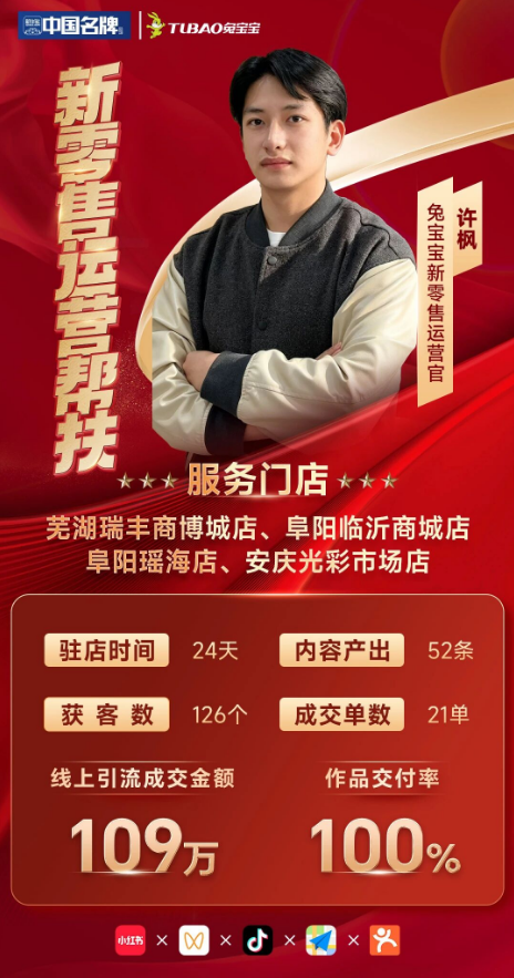 各區(qū)域新零售專員專注于為門店提供全方位的運營幫扶。一季度以來,安徽區(qū)域精準發(fā)力、批量幫扶,深度服務兔寶寶板材定制蕪湖瑞豐商博城店、阜陽臨沂商城店、阜陽瑤海店、安慶光彩市場店4家門店,通過全流程一站式幫扶,成功推動門店擺脫線上運營困境,從賬號斷更狀態(tài)升級為常態(tài)化運營,實現(xiàn)線上獲客與業(yè)績的雙重突破,彰顯了新零售幫扶模式的規(guī)?;x能價值。