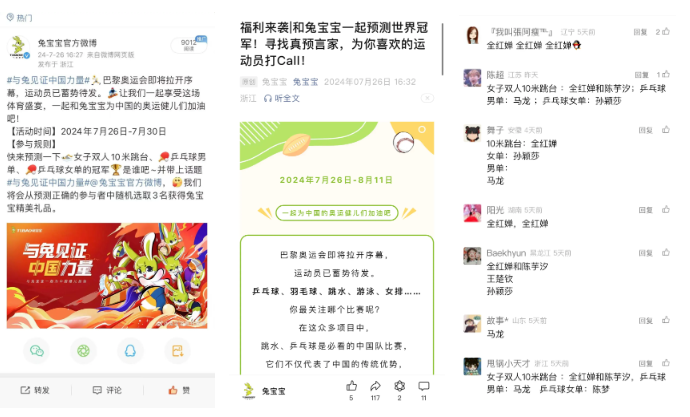 在比賽期間,兔寶寶在微博、微信公眾號平臺發(fā)起了預(yù)測冠軍的福利活動。這一活動迅速點燃了大家的熱情,紛紛化身為“預(yù)言家”,踴躍參與,競相留言預(yù)測自己心目中的冠軍。評論區(qū)里熱鬧非凡,每一條留言都承載著對比賽的熱愛與期待。兔寶寶通過這一活動,不僅增強了與粉絲之間的互動,也讓比賽的氛圍更加濃厚,讓每一位參與者都能感受到比賽之外的樂趣與驚喜。