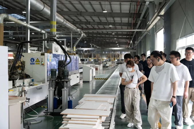 在兔寶寶家居團(tuán)隊的陪同下,江蘇貝殼圣都游學(xué)團(tuán)走進(jìn)兔寶寶研究院、家居展廳、家居產(chǎn)業(yè)園,實地感受了兔寶寶企業(yè)文化、研發(fā)實力,零距離考察了家居產(chǎn)品從選材、開料、封邊、打孔到倉儲等標(biāo)準(zhǔn)化流程,全方位見證了兔寶寶家居的品牌實力,為雙方未來的長久合作打下了更加堅實的基礎(chǔ)。