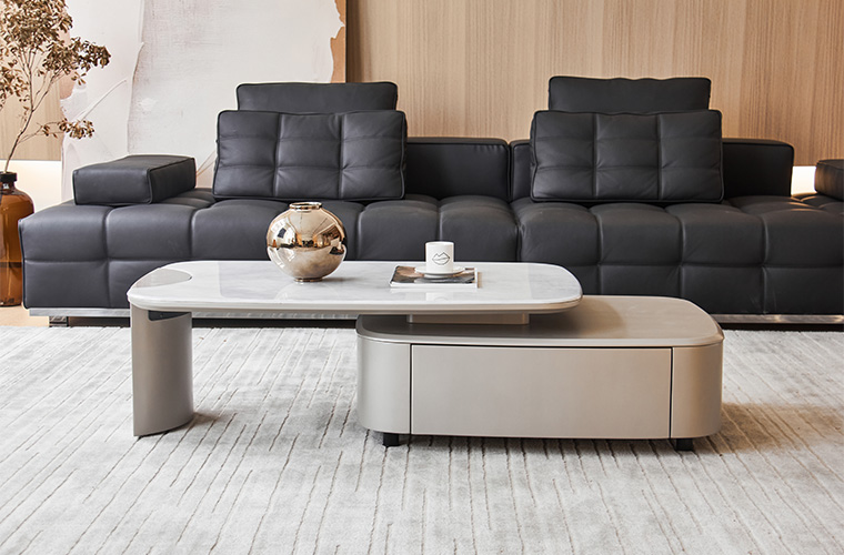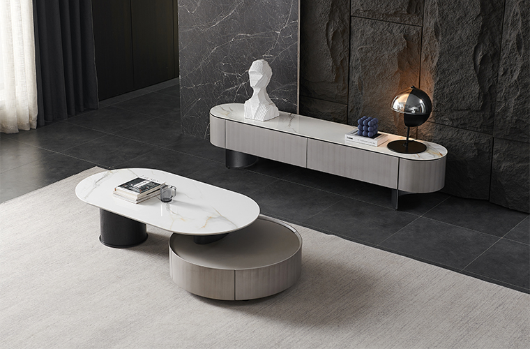淺灰金屬拉絲漆+槍色碳素鋼+卡斯高金巖板
