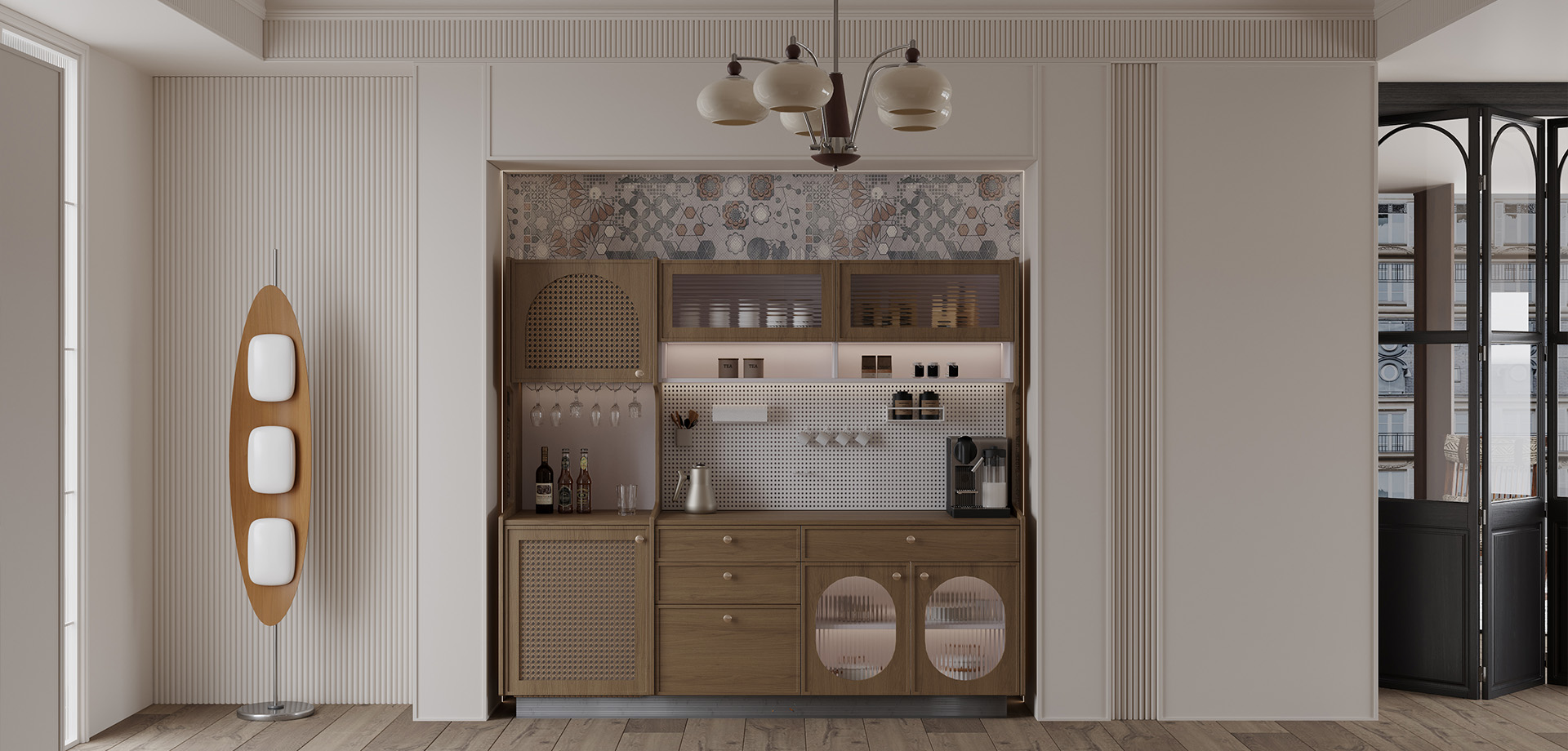 運(yùn)用到的各種材質(zhì)搭配與特性在裝飾上趨于不追求固定的表達(dá)形式,特性是海納百川,不受任何固定表達(dá)形式的約束,將不同時(shí)代的光芒相互交疊,互為稱托,將不同風(fēng)格的代表元素重新排列組合,核心在于實(shí)現(xiàn)視覺(jué)上的和諧與平衡。