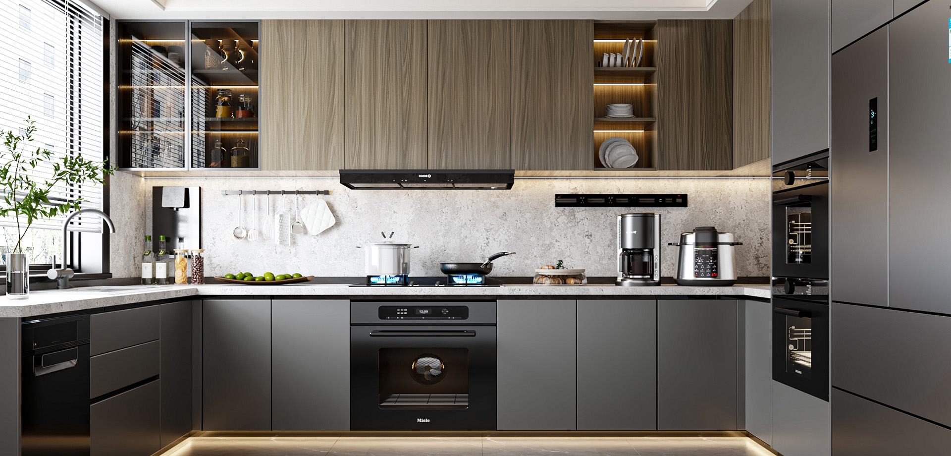 深灰啞光+防油木紋雙材質(zhì)