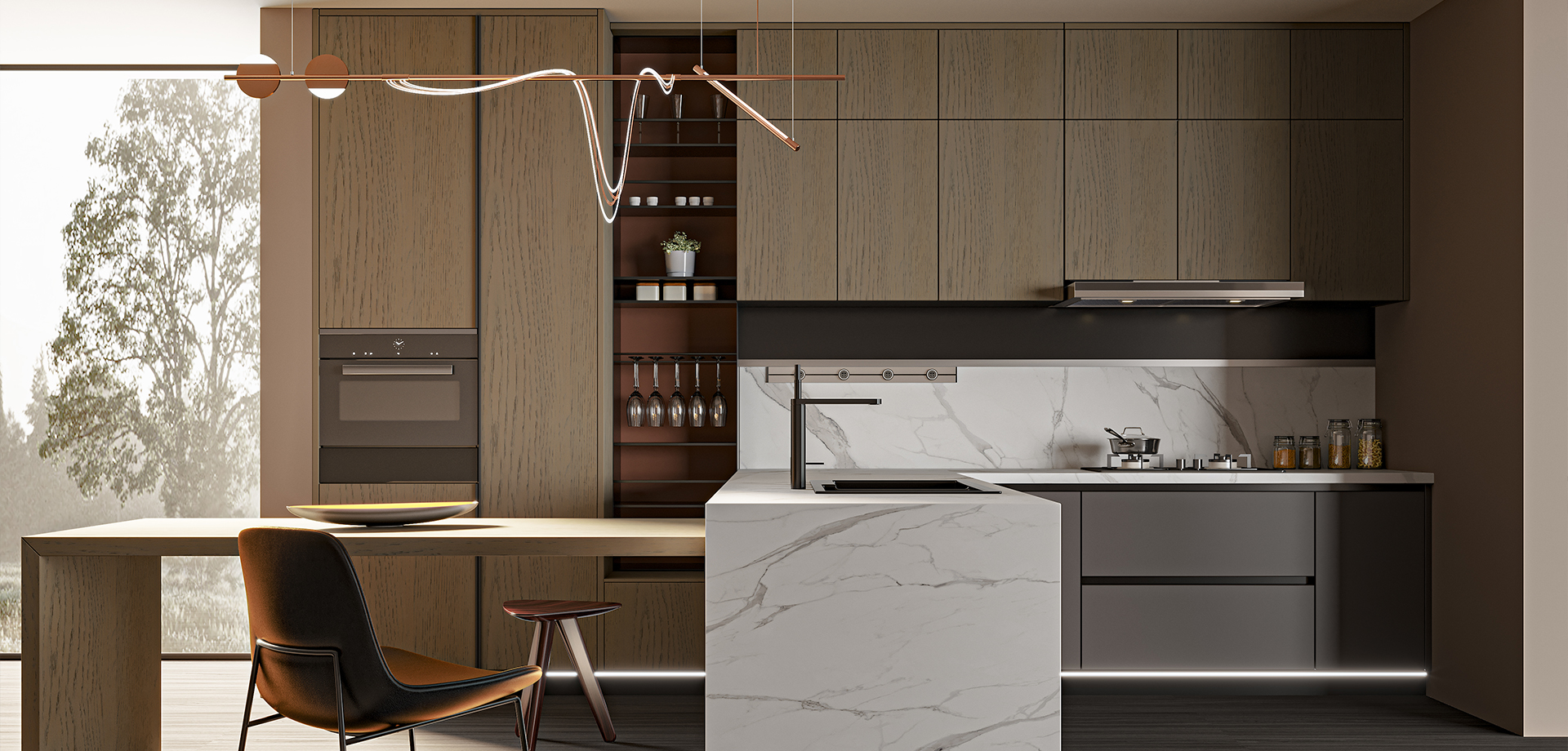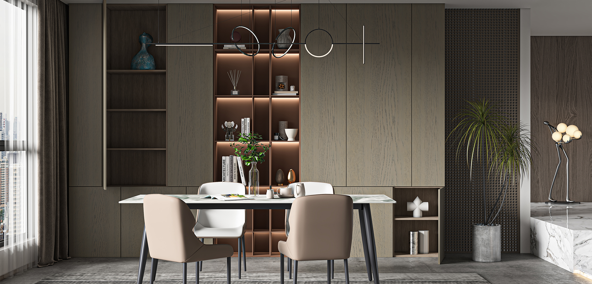 褐紅開放柜點綴設(shè)計,營造悠然自在鎮(zhèn)定的心境與狀態(tài)。
