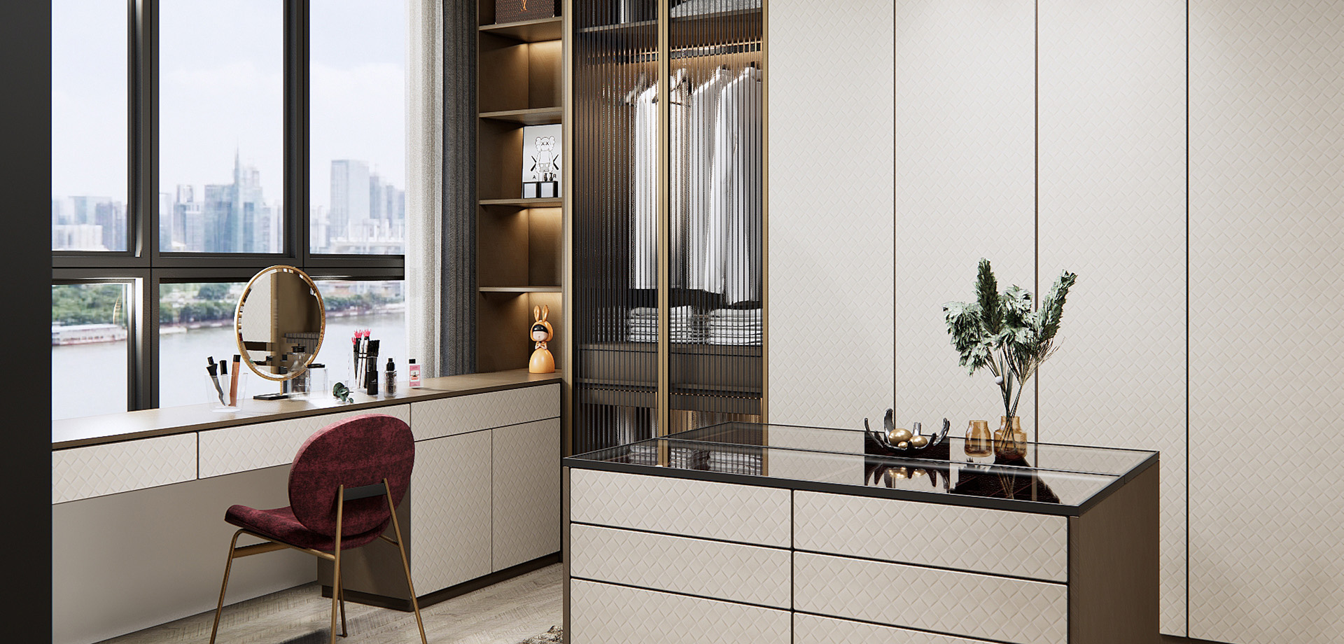 臺面掛件、綠植、整裝鏡。