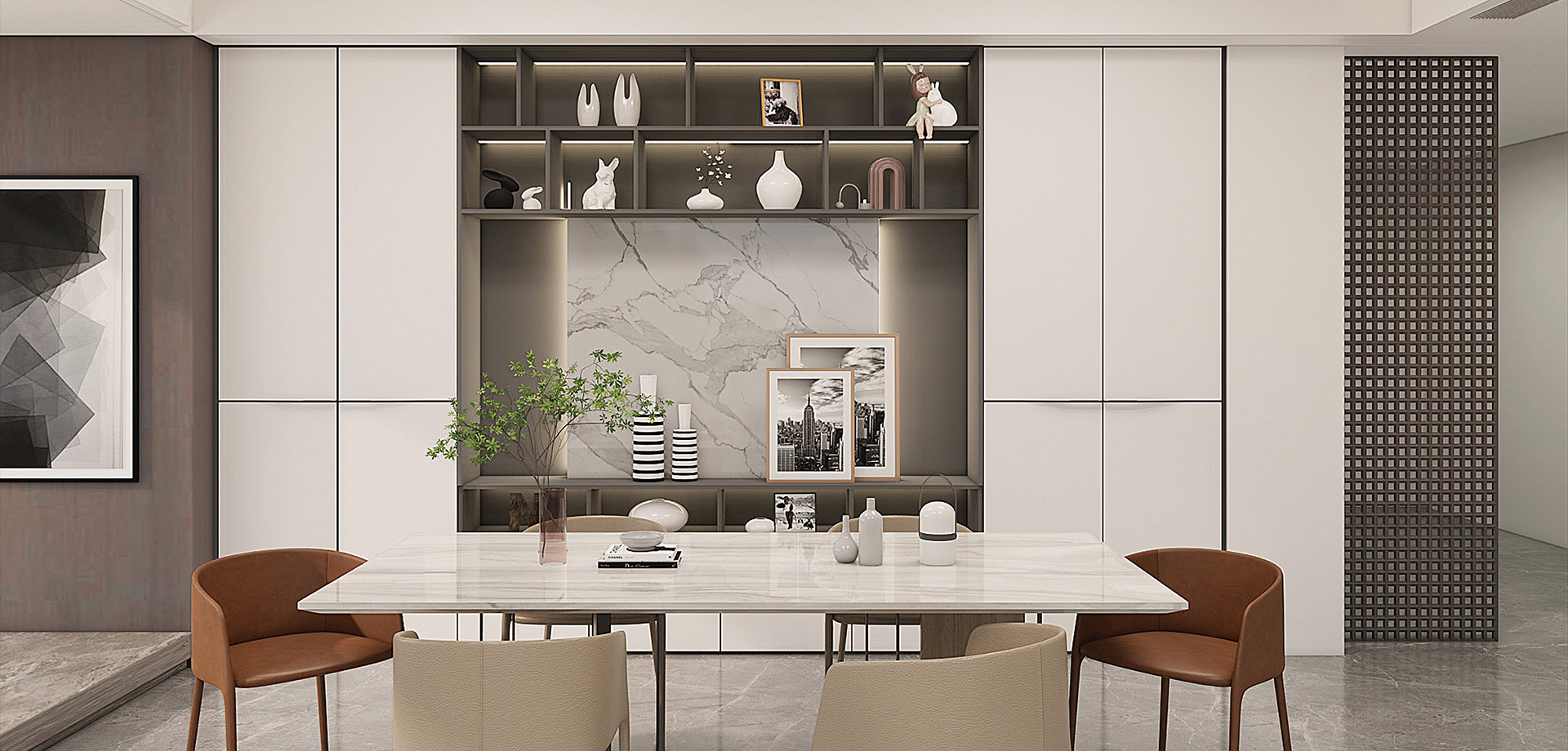 餐廳在吊頂造型中,既有效的分割了區(qū)域,