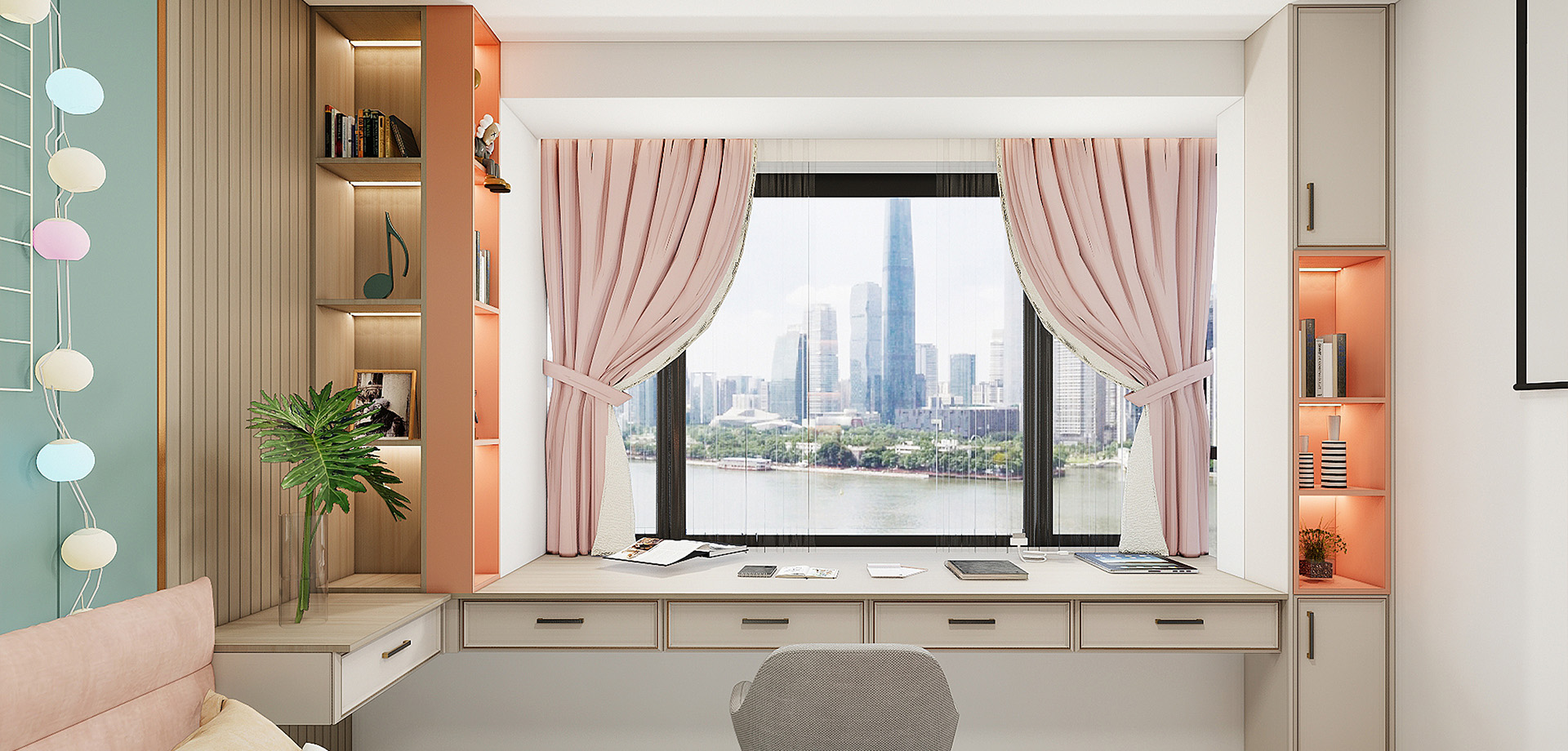 透過(guò)窗簾,疊層開放式設(shè)計(jì),