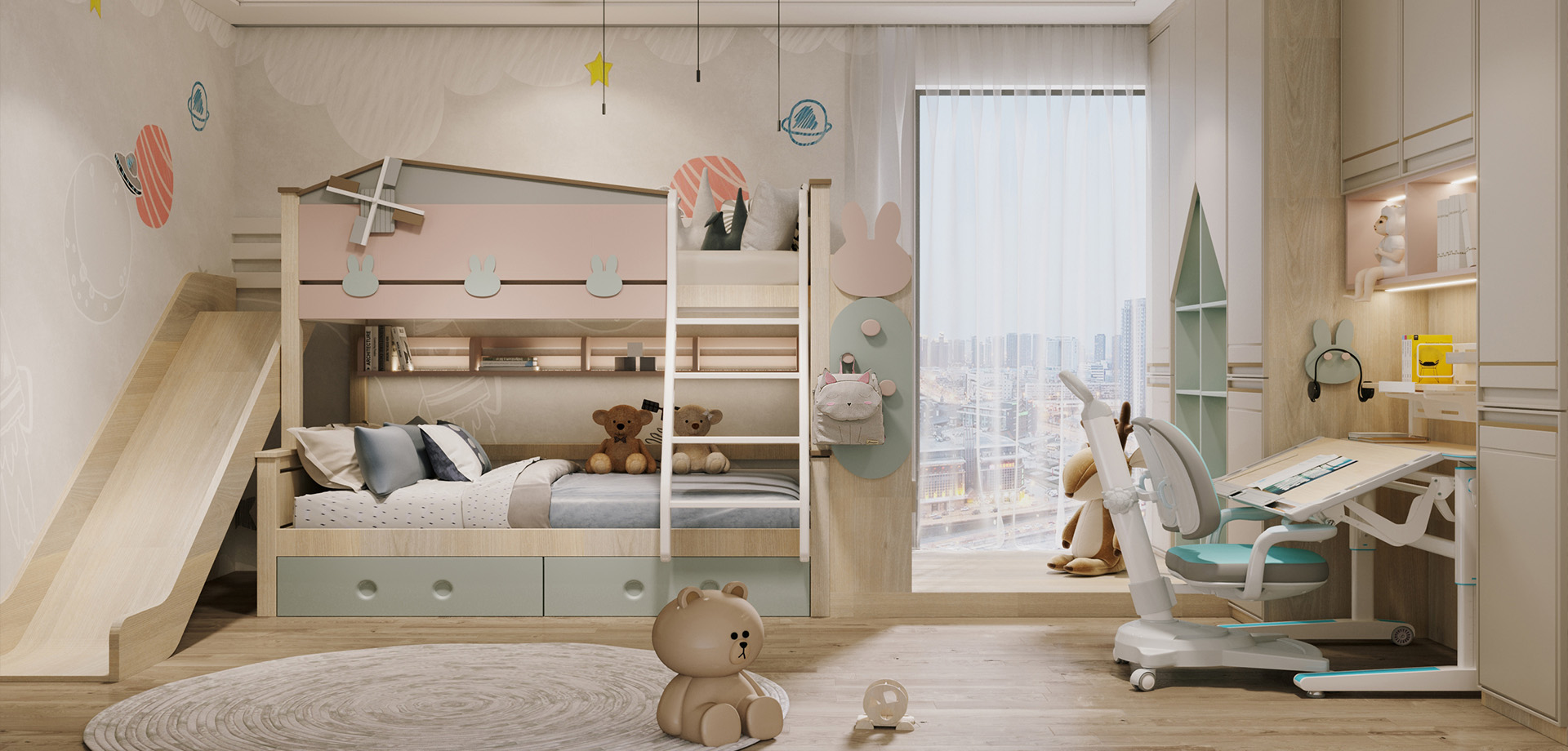 房間內(nèi)部加入卡通兔子的元素,