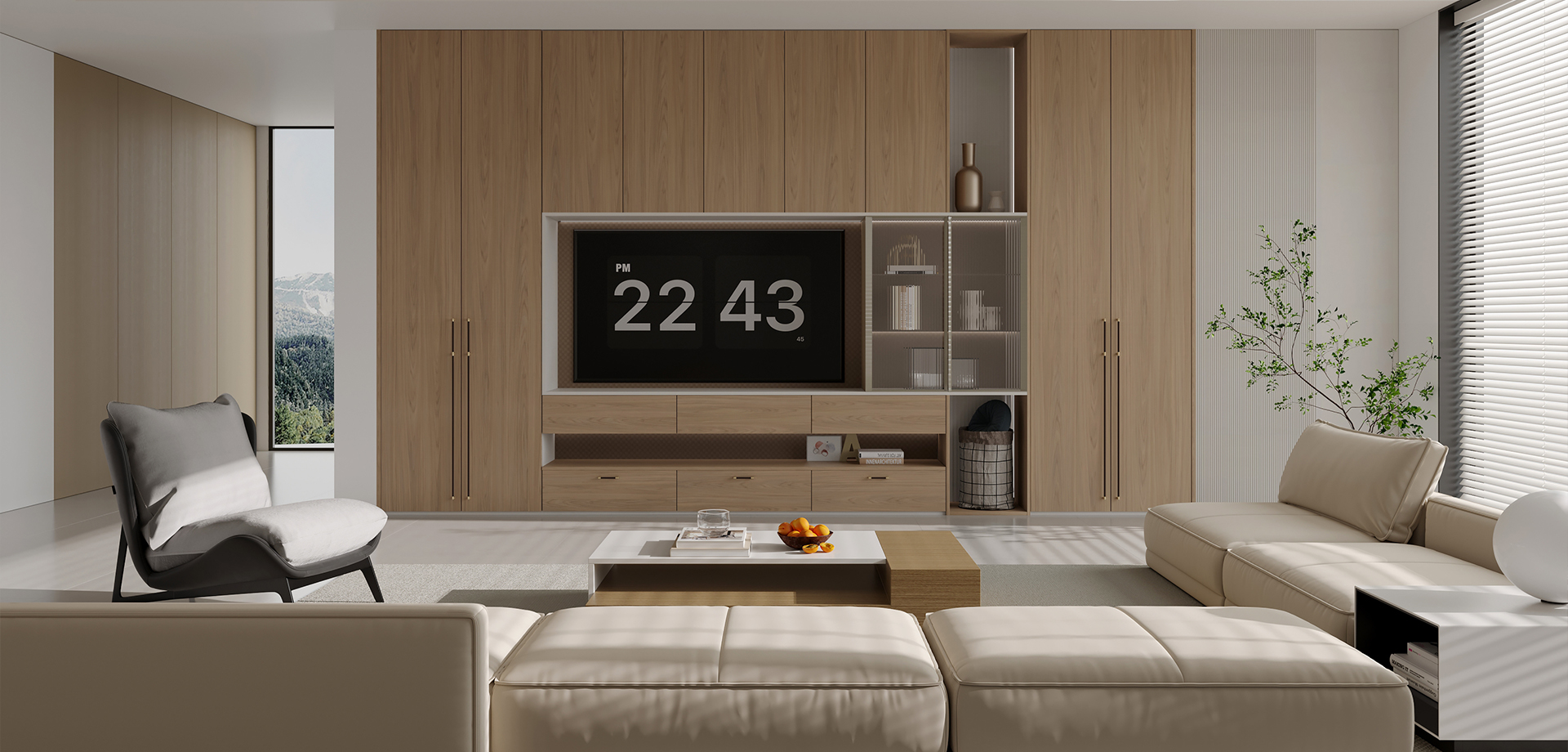在淺咖色調(diào)的氛圍里融入米灰色的點(diǎn)綴,加上米蘭香檳金低飽和度的金屬色、明亮燈飾,是充滿生命力的松弛生活圖景。